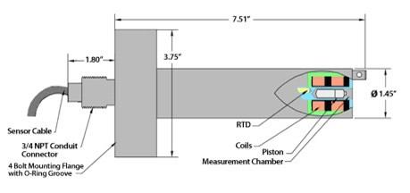 續(xù)電磁力的作用下來回移動(dòng)一個(gè)微型活塞。專利技術(shù)的電路分析活塞來回移動(dòng)行程的時(shí)間,從而測(cè)量絕對(duì)粘度。 一個(gè)內(nèi)置的RTD溫度測(cè)量探頭,實(shí)時(shí)測(cè)量測(cè)量室的溫度。