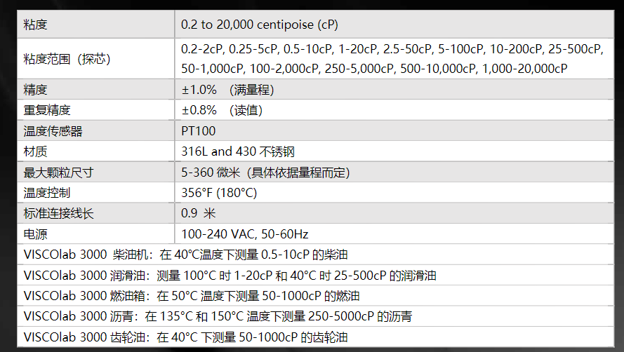 小樣品粘度計(jì)集成了一個(gè)電子加熱器和綜合的溫度控制系統(tǒng),可提供連續(xù)的粘度和溫度讀數(shù)可在12個(gè)20:1粘度范圍內(nèi)進(jìn)行測(cè)量。粘度可顯示為CP或CST,溫度可顯示為°C或°F。集成溫度控制允許用戶在高于環(huán)境溫度至356°F(180°C)和高于環(huán)境溫度至-40°C的任意設(shè)置下進(jìn)行測(cè)量,并配備可選的冷卻套。該傳感器易于現(xiàn)場(chǎng)校準(zhǔn)。可以預(yù)先校準(zhǔn)多個(gè)工作范圍和產(chǎn)品設(shè)置。數(shù)據(jù)可以通過(guò)RS-232串行端口輸出到PC,用于跟蹤、存儲(chǔ)或圖形顯示。電子設(shè)備允許用戶定義溫度和粘度顯示單位、數(shù)據(jù)平均間隔、密度等。電子設(shè)備還提供數(shù)字讀數(shù),以及樣本穩(wěn)定性的統(tǒng)計(jì)數(shù)據(jù),使測(cè)試和操作員之間具有更大的重復(fù)性。主要特征易于使用和維護(hù) cP和cst的數(shù)字顯示 存儲(chǔ)多達(dá)40個(gè)特定于產(chǎn)品的測(cè)試設(shè)置 可拆卸的溫控循環(huán)套和蓋子增強(qiáng)功能 所需液體少于2ml,最大限度地減少產(chǎn)品浪費(fèi) 需要少量的工作臺(tái)空間 便攜 內(nèi)部加熱器,用于溫度控制在40/50/100/135/150°C等各種條件高精度和可靠性 軟件多次測(cè)量樣品,直到標(biāo)準(zhǔn)偏差小于0.2%,然后根據(jù)ASTM D7483顯示粘度值適用范圍0.2至20000cP的粘度測(cè)量值標(biāo)準(zhǔn)方法符合ASTM D7483標(biāo)準(zhǔn) 相關(guān)于ASTM D445標(biāo)準(zhǔn)。