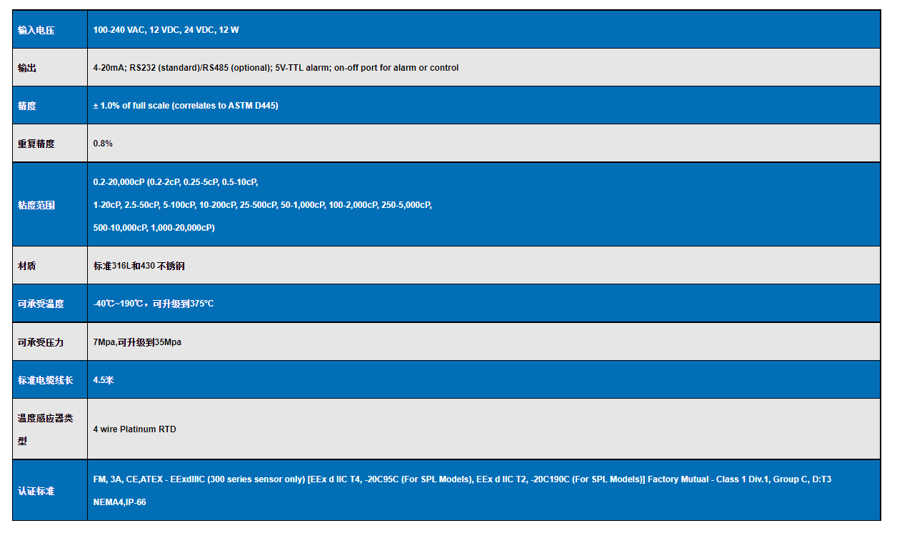 3.VISCOpro2000 在線粘度計:ViscoPro 2000是單線監測和控制應用的理想選擇,它將強大的電子設備與我們創新的傳感器技術結合在一個自動粘度計中。ViscoPro 2000為連續、可靠、準確的粘度測量提供自動流體監測。