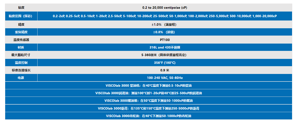 2.VISCOlab3000實驗室粘度計:當粘度測試需要在特定溫度下測試樣品材料時,劍橋粘度公司的ViscoLab 3000粘度計是理想選擇。ViscoLab 3000就是所需的全部——不需要單獨、笨重、響應速度慢的水浴系統。應用領域包括研發、質量控制實驗室和測量VI指數的機油粘度。